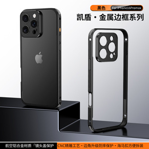 跨境适用苹果17/16promax凯盾海马扣边框金属镜头手机壳iPhone15