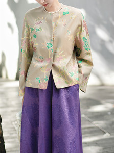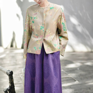 2025秋季新款桑蚕丝蜀锦萝外套新中式国风复古气质显瘦宽松上衣女