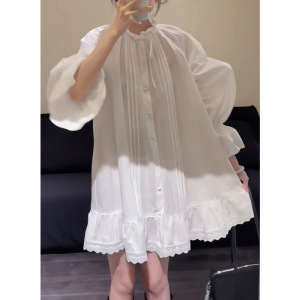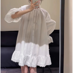 高JI感气质蕾丝拼接灯笼袖连衣裙女2025秋季法式气质宽松显瘦短裙
