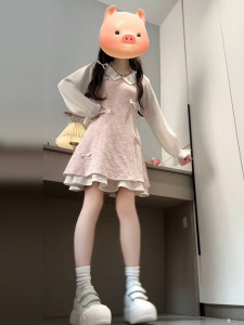 小个子绝美粉色连衣裙子女初秋季2025新爆款假两件miu系穿搭短裙
