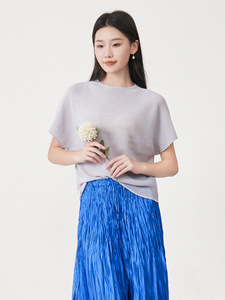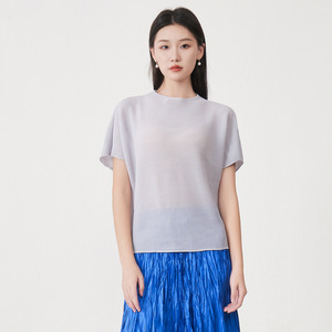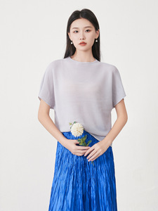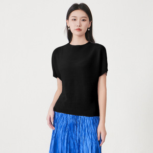 女士宽松上衣遮肚显瘦宽松蝙蝠袖纯色简约通勤百搭三宅短袖T恤衫
