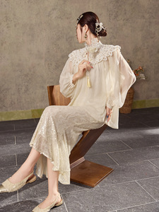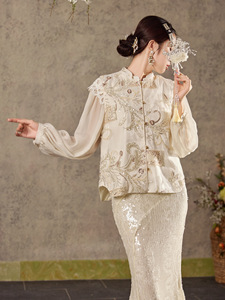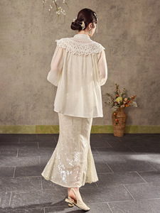 新中式国潮水溶蕾丝云肩设计上衣女新款温柔千金风高定衬衫 N7039