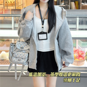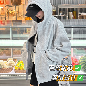2025春秋新款灰色连帽开衫拉链卫衣外套女新款加厚宽松上衣韩版