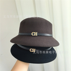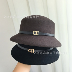 皮带扣羊毛帽子女秋冬简约日系小帽檐礼帽渔夫帽显脸小圆顶盆帽