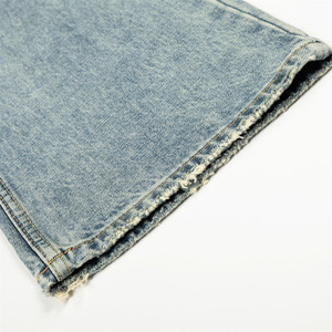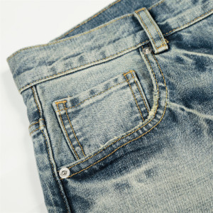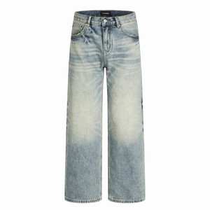 街潮朋克磨白水洗牛仔阔腿裤男士宽松休闲渐变做旧磨破边直筒长裤