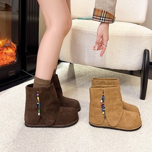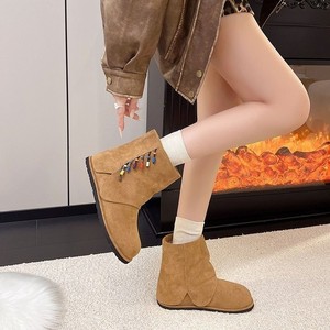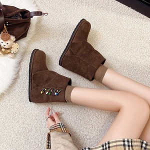 复古内增高短靴女2025秋冬新款圆头软底勃肯堆堆靴短筒西部牛仔靴