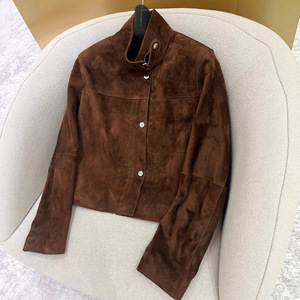 2025秋季新款简约时尚百搭立领单排扣设计真皮夹克外套批发