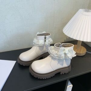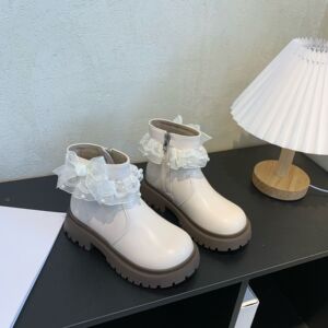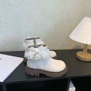 女童皮靴2025秋季新款蕾丝英伦风马丁靴韩版女孩时尚百搭防滑短靴