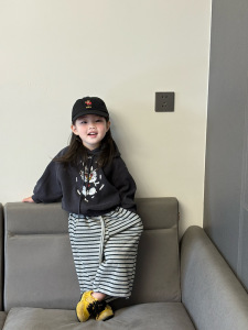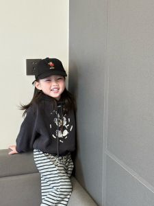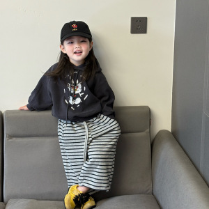 女童秋季穿搭卡通连帽卫衣女宝宝时尚百搭条纹休闲裤子潮流两件套