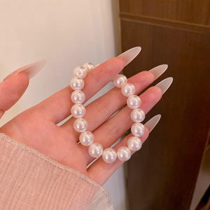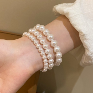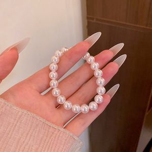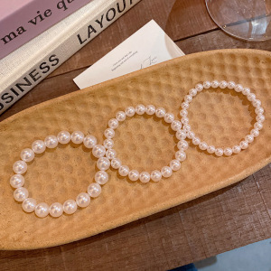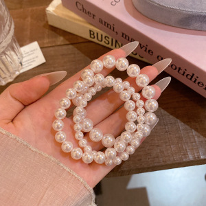 施家奶白正圆强光珍珠手链女款弹力绳叠戴手串不掉皮不掉色手饰品
