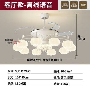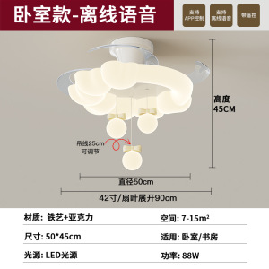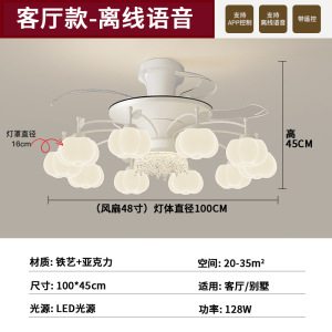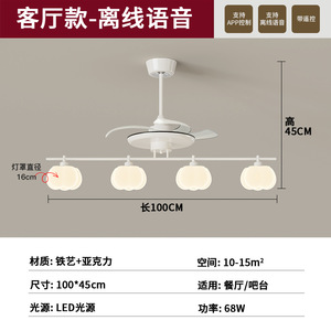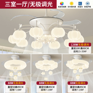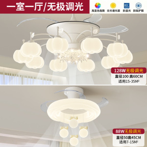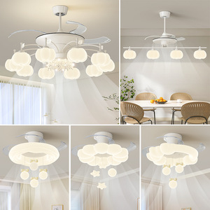 客厅风扇灯北欧奶油风小南瓜隐形风扇灯静音餐厅吊扇灯全屋灯具