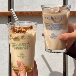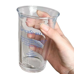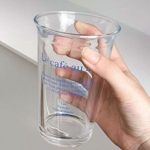 代发包邮ins风玻璃水杯女生高颜值翻口字母杯子家用喝水杯咖啡杯