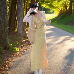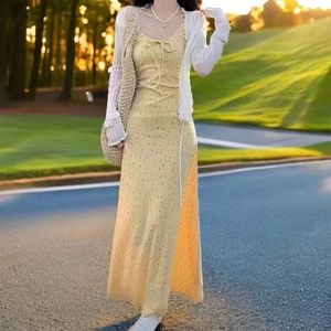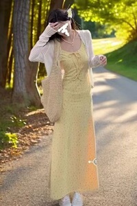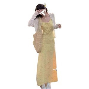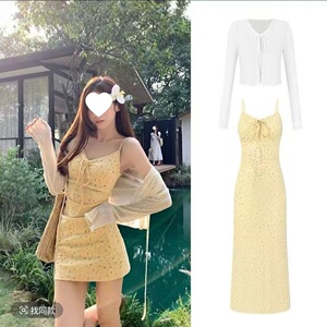 黄色吊带碎花连衣裙子女夏季2025新款小个子显瘦套装穿搭a字短裙