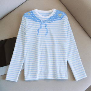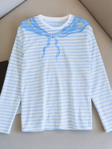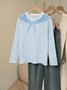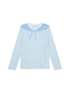 蓝色蝴蝶结长袖t恤防晒罩衫女夏季设计感宽松外搭防晒衫上衣