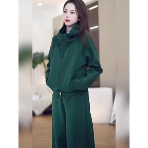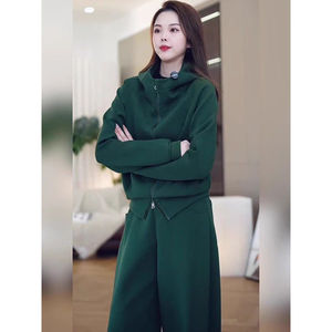 韩系搭配一整套秋装2025年小个子时尚纯色连帽毛绒卫衣长裤两件套