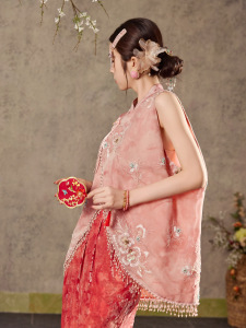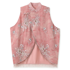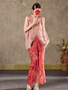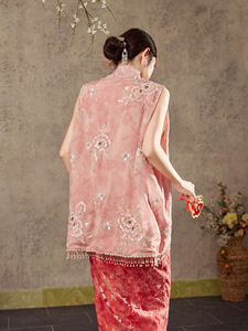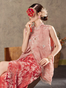 早秋国风女装重工立领背心丝绒开衩半裙马甲新中式新款套装 N7054