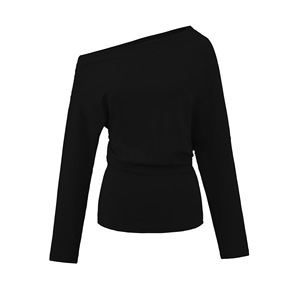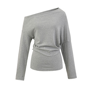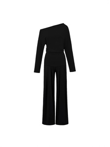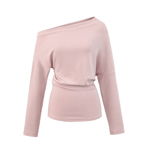 露肩斜领一字肩收腰长袖T恤搭松紧要宽松阔腿修身直筒裤套装女秋