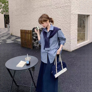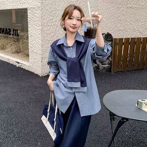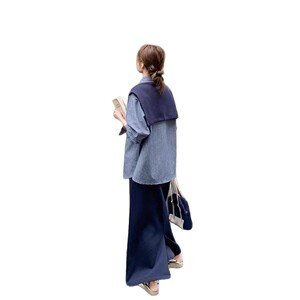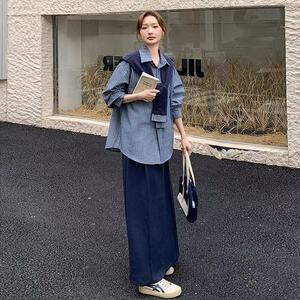 早春秋季盐系减龄穿搭一整套女士开叉半身裙披肩衬衫休闲两件套装