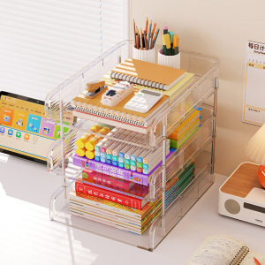 桌面透明书架置物架学生书桌书本文具收纳多层架子办公室储物架
