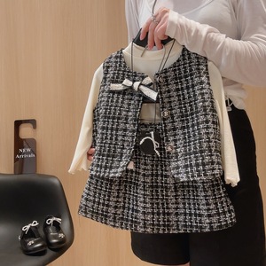 女童三件套秋新款女童小香风马甲打底衫短裙宝宝名媛套装套65166