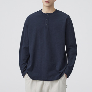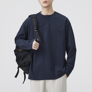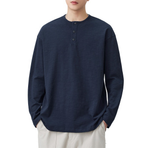 安洋竹节纯棉2025秋季新款长袖t恤男士美式复古亨利领内搭衣服潮T