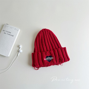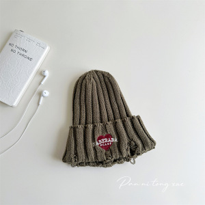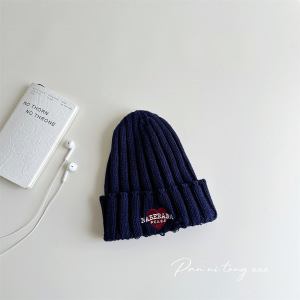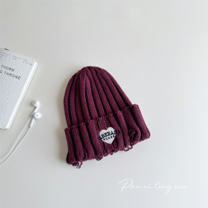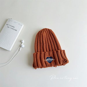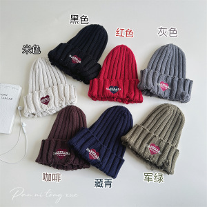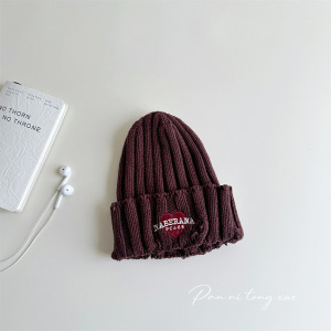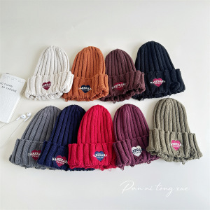 新款简约儿童粗条毛线帽爱心刺绣针织帽秋冬百搭保暖男女童冷帽子
