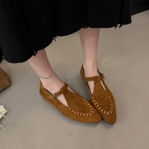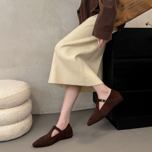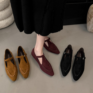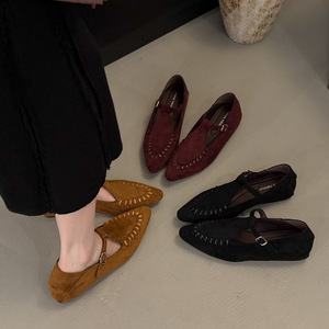 复古尖头玛丽珍鞋女2025秋季新款百搭软底绒面低跟尖头单鞋懒人鞋