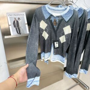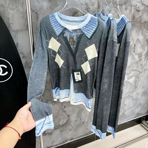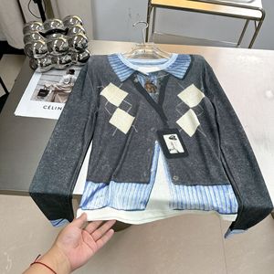 巨显瘦3D立体印花工牌小熊菱格假两件上衣女修身版显瘦长袖打底衫