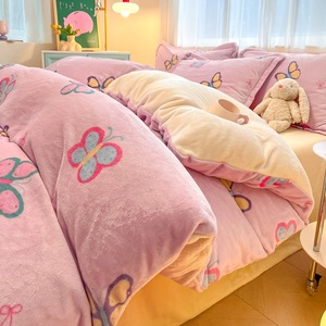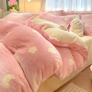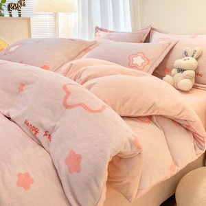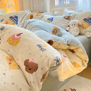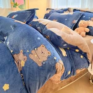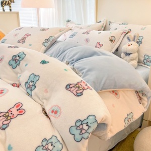 冬季牛奶绒四件套宝宝绒卡通印花单件被套法兰绒宿舍单人三件套