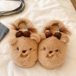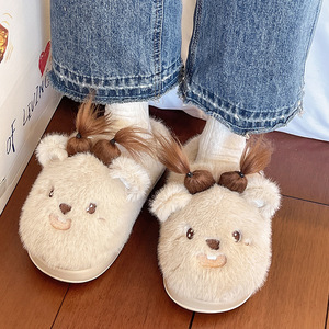 奇丹鞋厂卡通棉拖鞋女秋冬季居家室内保暖外穿防滑可爱毛毛拖鞋女
