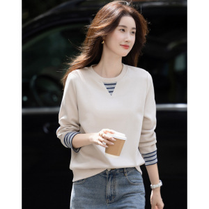 清新云朵棉2025秋季慵懒宽松藏肉时髦罗纹撞色袖口卫衣