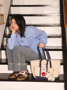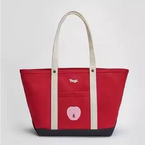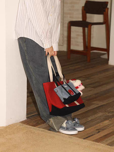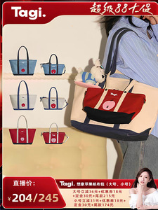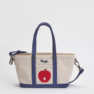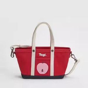 Tagi.《想象苹果》拼色通勤复古单肩包帆布托特手提斜挎包