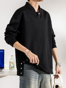 男士大码休闲开领卫衣胖男生加肥加大潮牌春秋新款套头长袖上衣男