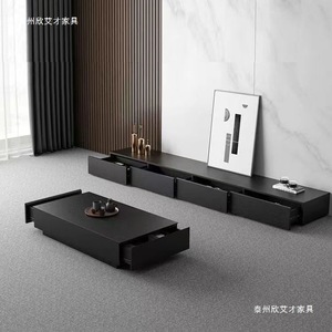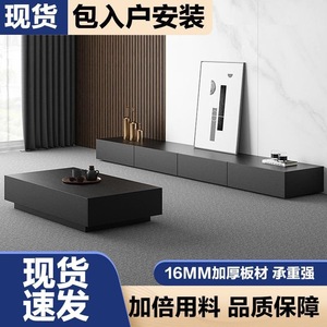 电视柜家具家用意式极简现代黑色木质小户型茶几电视柜落地柜组合