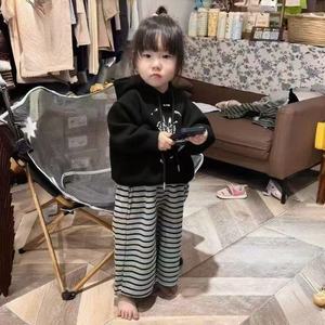 黑色卫衣+条纹裤套装