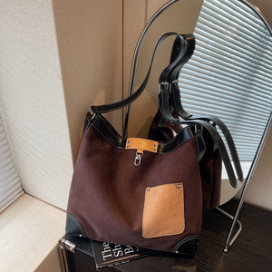 大容量复古时尚托特包包女2025秋季新款休闲百搭撞色单肩斜挎包潮