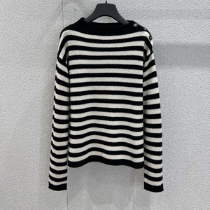 肩扣条纹撞色针织毛衣 复古海军风舒适百搭长袖上衣秋季 ZT63309