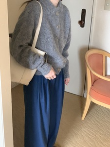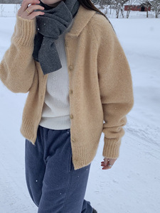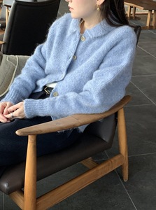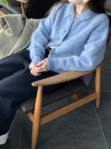 现韩国设计师lero*e美娜家羊驼毛针织开衫韩系女装翻领单排扣毛衣