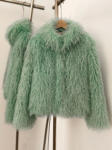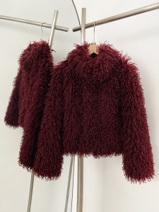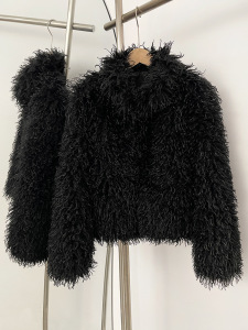 欧美风外贸女装新款2025时尚百搭纯色人造皮草短款外套小个子女装