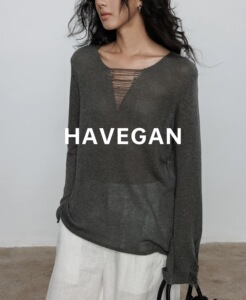 与间HAVEGAN/秋季v领天丝亚麻长袖设计感针织衫女宽松老钱风上衣