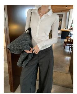 辣妹纯欲POLO衫翻领长袖T恤女2025春秋正肩修身内搭显瘦打底上衣
