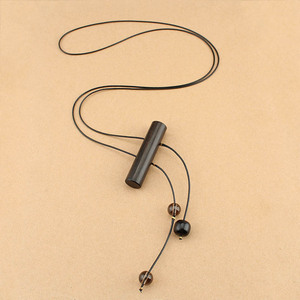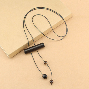 简约复古黑檀木吊坠项链女百搭小众高级感长款毛衣链棉麻配饰批发