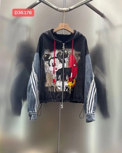 欧货卫衣女2025秋季新款个性卡通字母印花拼接牛仔袖宽松毛边夹克