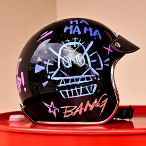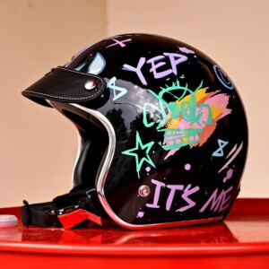 台湾JEF复古头盔半盔3C涂鸦高颜值轻便四季通用摩托车四分之三盔