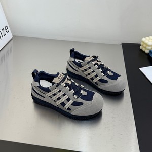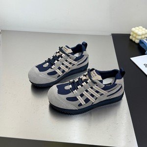 真皮透气网面内增高德训鞋女2025秋新款轻便拼色登山运动鞋阿甘鞋