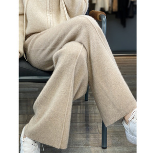 纯羊毛针织裤女阔腿裤秋冬加厚休闲长裤高腰外穿直筒裤子