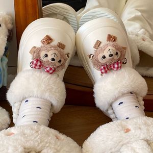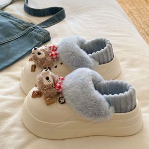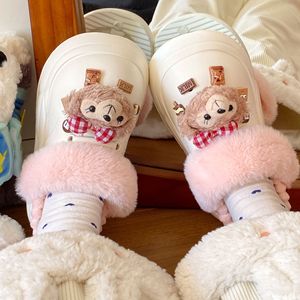 可爱卡通雪莉玫包头拖鞋女2025秋冬新款外穿厚底加绒保暖棉拖鞋女