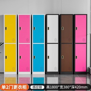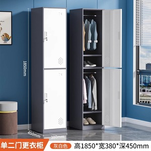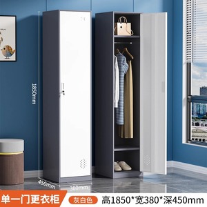 单门更衣柜员工宿舍储物柜铁皮柜子单人办公换衣柜带锁浴室更衣箱