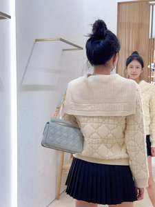 2025秋冬海军领拉链针织羊毛外套长袖菱格上衣女格纹毛衣小香风