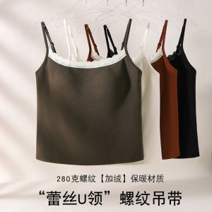 罩杯一体式德绒保暖内衣女磨毛防寒内搭吊带背心打底上衣秋冬新品